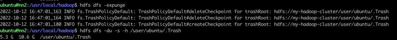 hdfs dfs -rm -r /user/ubuntu/.Trash